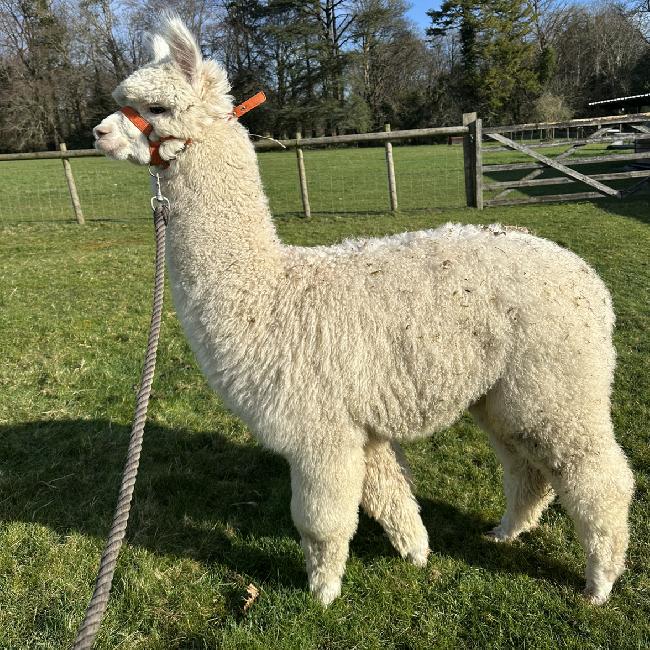 A well grown, strong and lively young male, easy to handle and has a sweet temperament. Morrison has a very soft fleece with excellent staple length and good fineness.